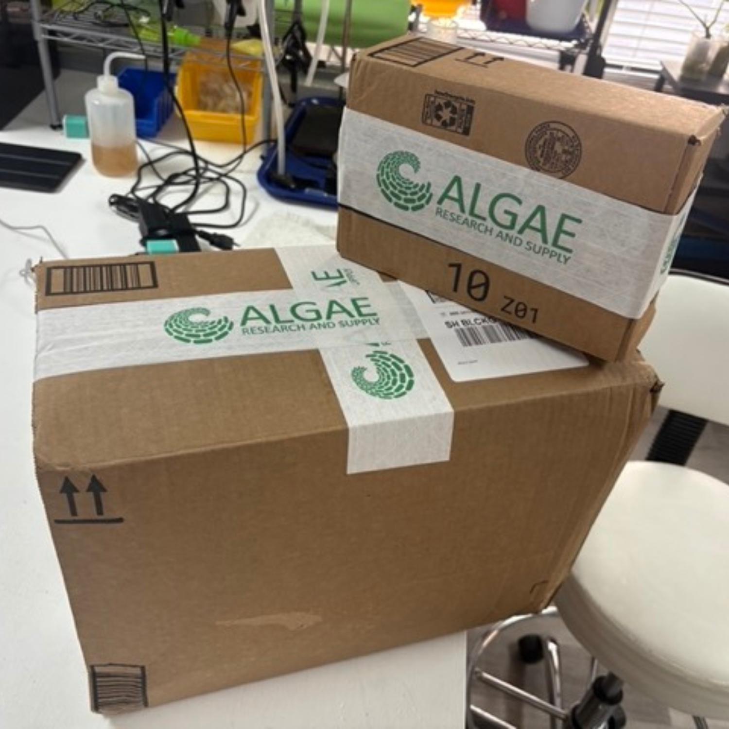 Your order will arrive usually within 1-4 business days of your order. (We use about 95% used boxes so be ready for the upcycled box!). You will see our Algae Logo on the tape. Unpack the materials and lay out your lab!